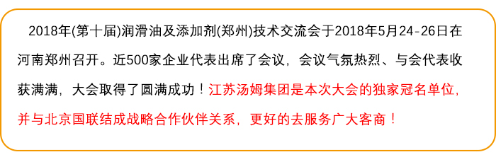 江蘇湯姆集團獨家冠名的2018年(第十屆)潤滑油及添加劑(鄭州)技術(shù)交流會圓滿落幕!