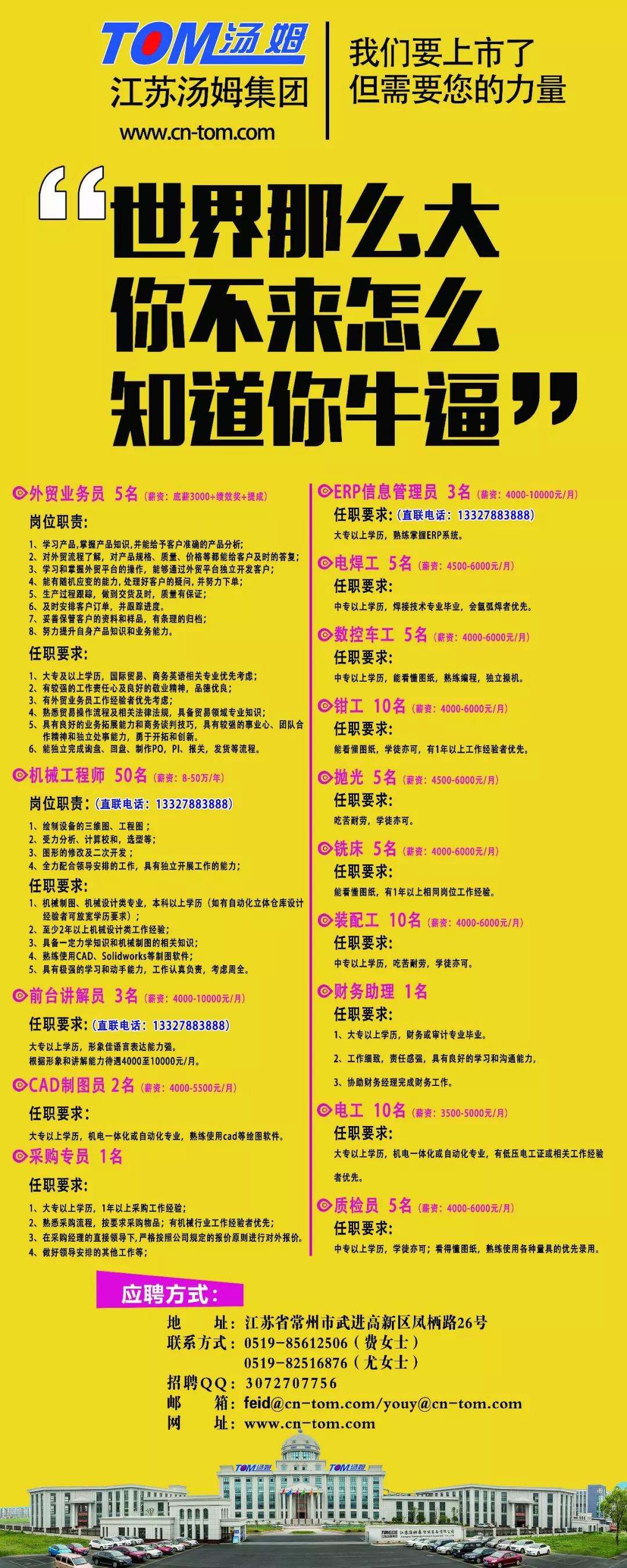 【誠(chéng)聘】江蘇湯姆集團(tuán)誠(chéng)聘英才,只要你夠出色,我們就會(huì)給你最好的平臺(tái)!