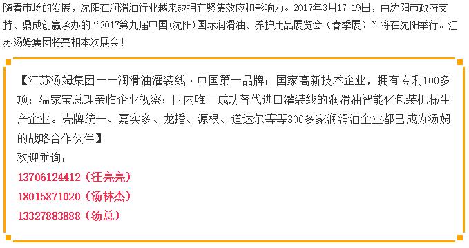 【展會信息】江蘇湯姆集團(tuán)亮相沈陽國際潤滑油展,歡迎新老客戶光臨!