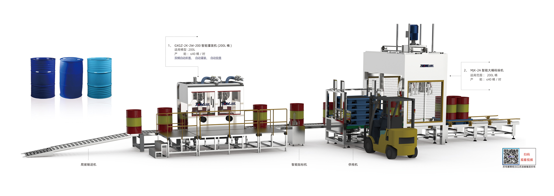 1、本線適用于農藥、化工200L桶包裝規格產品灌裝。